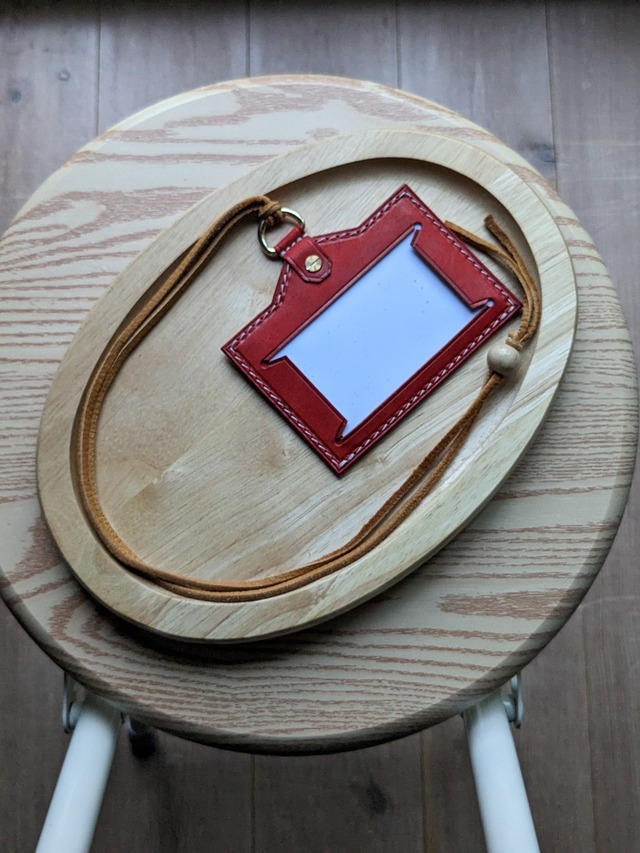 パスケース"cornice(コーニス)" レッド イタリアンレザー MARGOT(マルゴー)で作成した手縫いの首掛けパスケースです。 商品説明 ・外装 成牛革:MARGOT(マルゴー レッド) ・レース ディアスキン(鹿革 キャメル) ・Dカン(本金塗装) ・真鍮ネジ ・ループエンド 木製ビーズ(直径14mm) サイズ 縦82mm 横103mm 厚み5mm レース紐:長さ900mm 仕様 カードポケット1箇所 cornice(コーニス)とはイタリア語で"額縁"を意味します。 カードを入れたときの見た目が額に入った絵の様に見えるところから名付けました。 イタリアンレザーMARGOT (マルゴー)とは? イタリアのトスカーナ州にあるVirgilio Conceria Artigiana社が製造している植物タンニン鞣しのレザーです。 革表面を意図的にやすりがけし起毛させることで、マットな仕上がりと円形の傷模様が施されております。 使い込むほどエイジングによって艶が増し、濃く深い色合いへと変化していく素敵なレザーです。