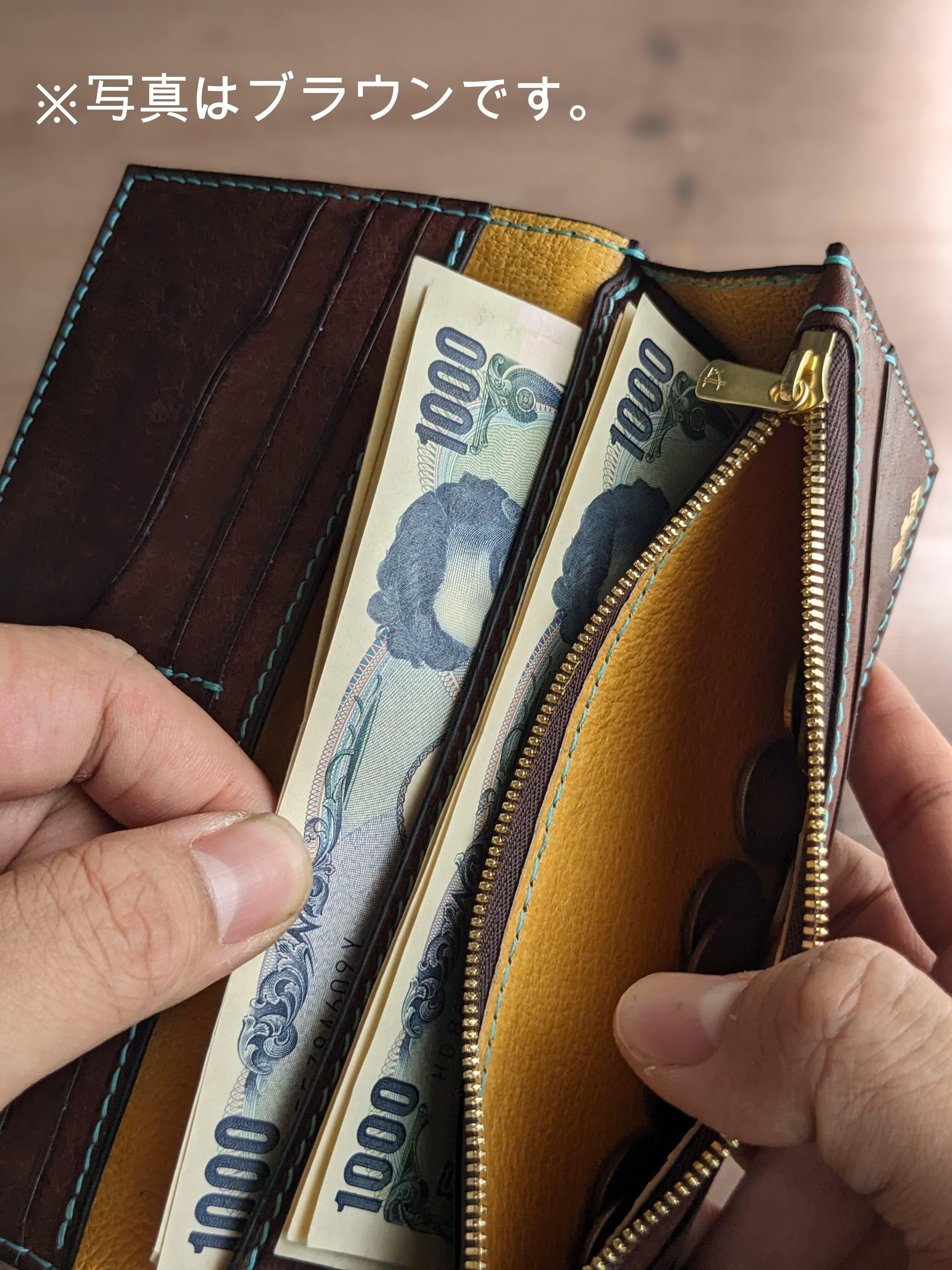 イタリアンレザーMARGOT(マルゴー)で作成した手縫いの長財布です。