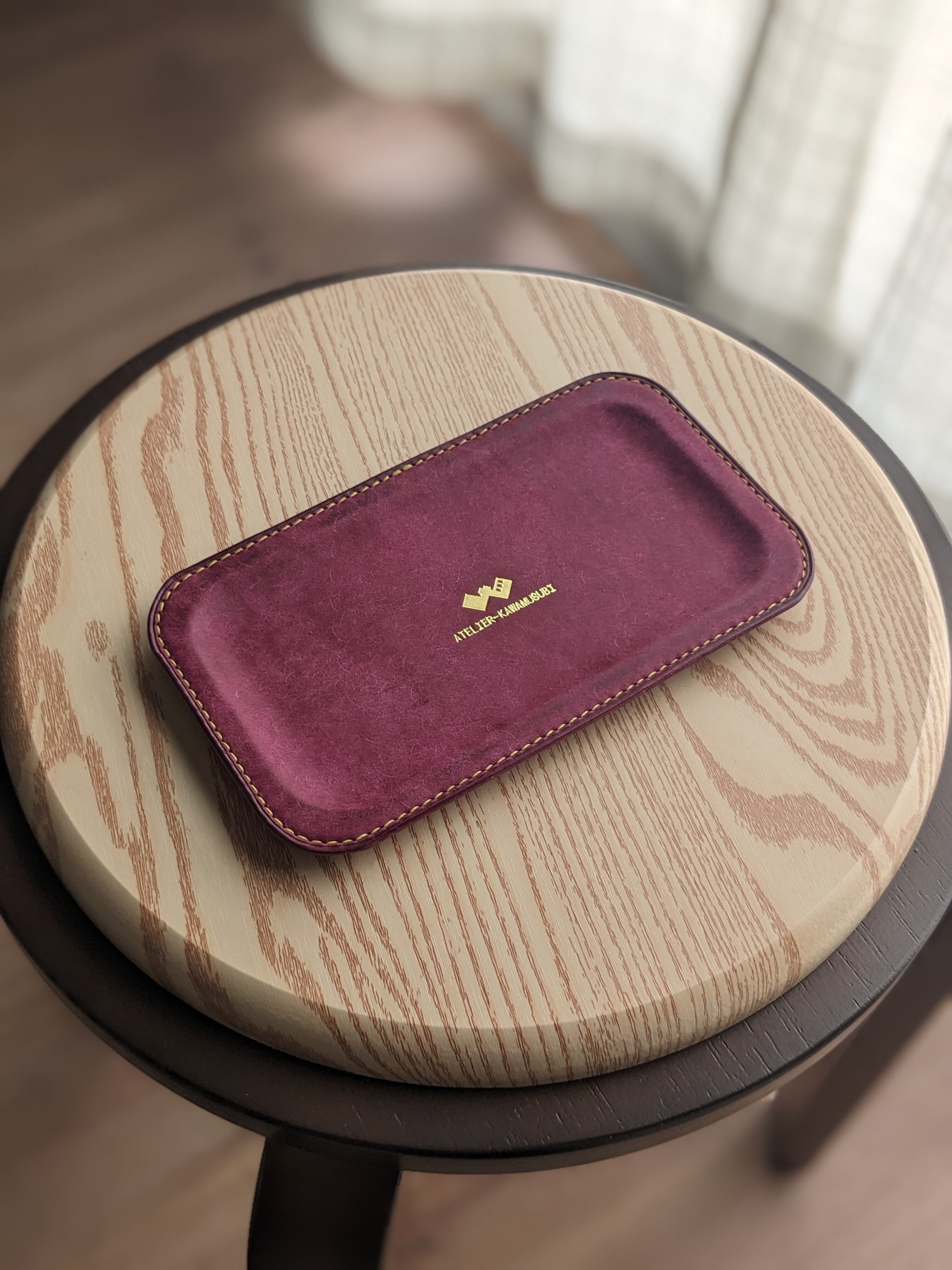 イタリアンレザー MARGOT(マルゴー)で作成した手縫いのトレイです。