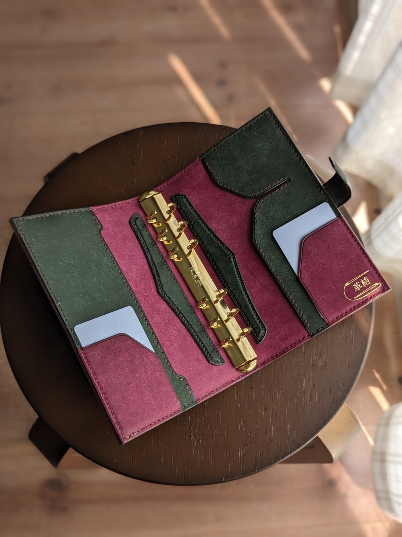 イタリアンレザー MARGOT(マルゴー)で作成した手縫いのシステム手帳カバーです。