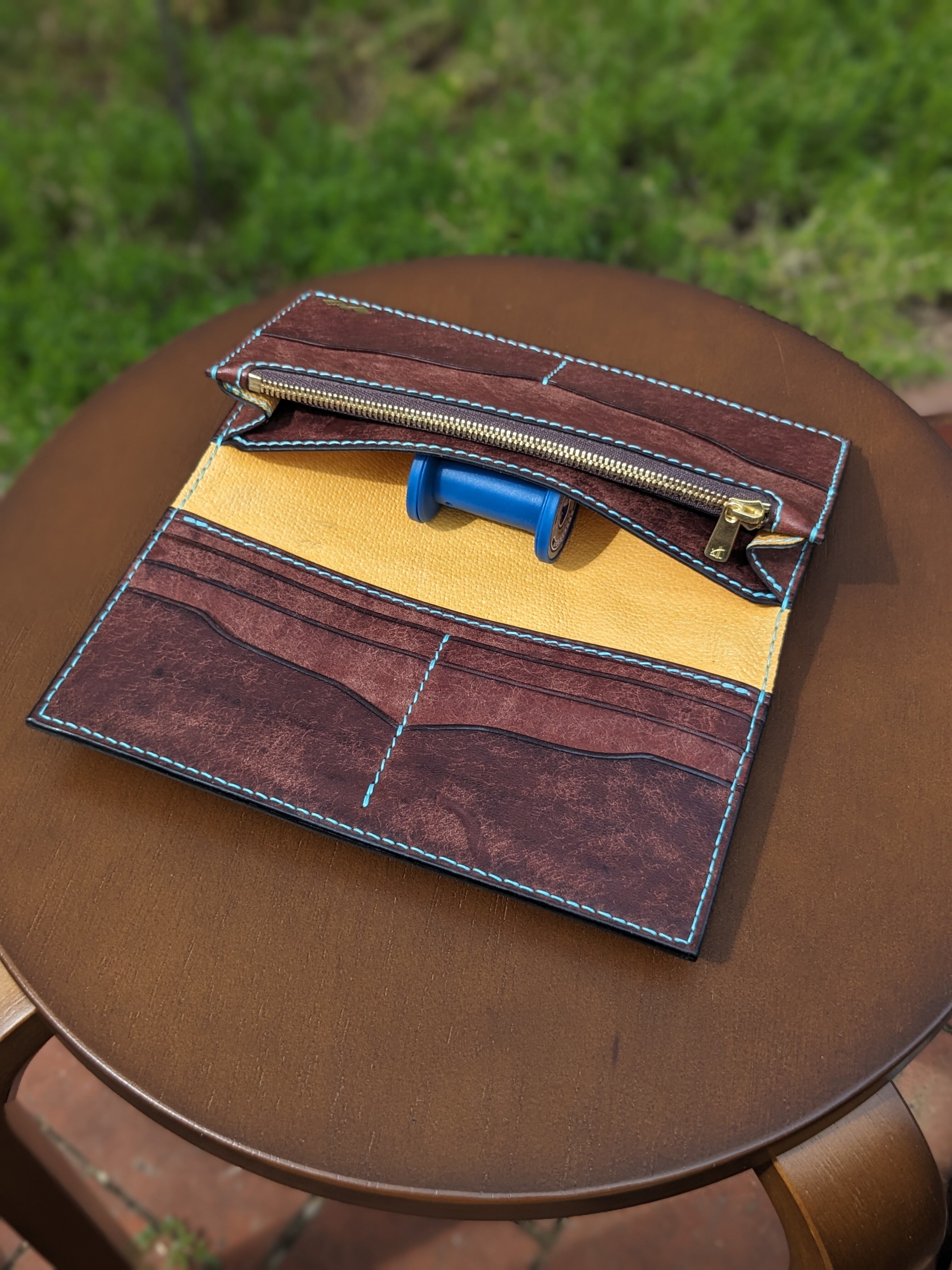 イタリアンレザーMARGOT(マルゴー)で作成した手縫いの長財布です。